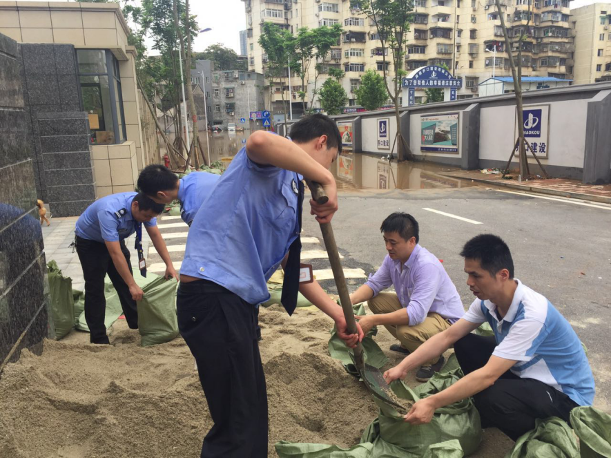 • 630日起,长沙连日暴雨,整个城区防洪抗灾形势严峻。面对突如其来的险情,我公司各项目在做好物业服务的同时,积极帮助业主开展防汛救灾工作。71日晚,国家开发银行湖南省分行项目附近街道发生管涌内涝,瞬间项目部进水约50CM。项目总经理唐亚鸣第一时间启动防汛救灾紧急预案,整晚,防汛小队在唐亚鸣总经理与安全部吴浩经理的带领下,各司其职地在暴雨中开展防汛救灾工作,包括填装抗洪沙袋、清扫疏通安全通道、拉网式隐患排查,加固防汛安全墙等。由于长沙城区水位一直居高,内涝一时之间无法排除,为业主能够出行顺畅,更是展开生产自救,在西边灌木丛中开辟出一条新的应急通道供业主临时通行。同时继续加强巡视与排查,安排专人24小时轮班值守,以确保业主财产安全。