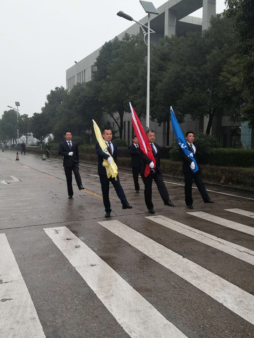 2月12日(正月初八)是科力远集团一年一度的开工大典,普瑞物业科力远项目部受邀参加开工大典并承担典礼中庄严神圣的升国旗仪式。上午8点18分由3名擎旗手、两名护旗手组成的“升旗护卫队”在嘹亮的国歌声中完成了庄严的升旗仪式。业主领导对项目员工标准威严的军姿提出高度表扬。